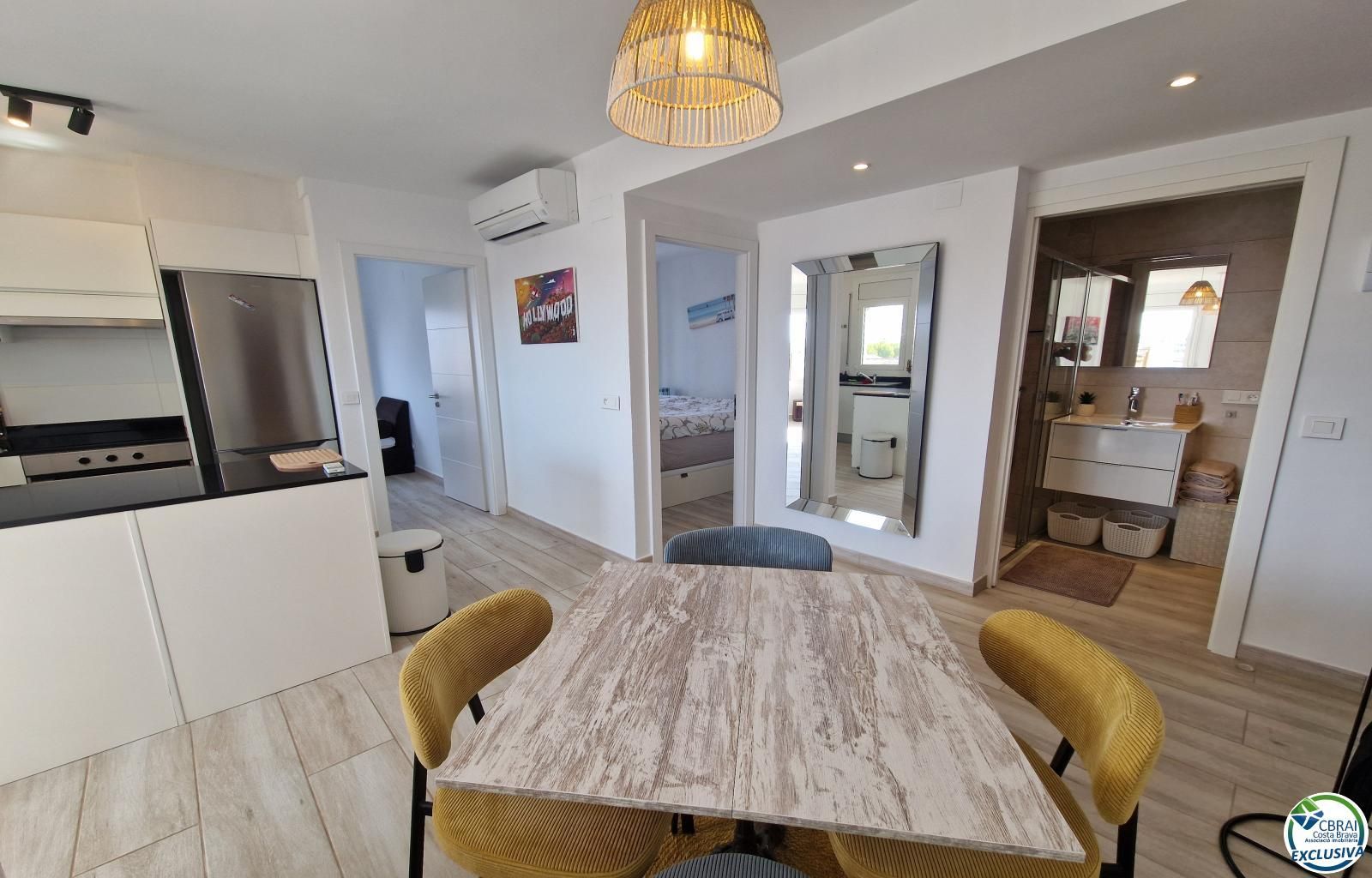 Magnífic apartament totalment renovat amb molt de gust, situat a l’última planta d’una residència tranquil·la de només tres plantes. Ofereix unes vistes espectaculars al port i al canal.