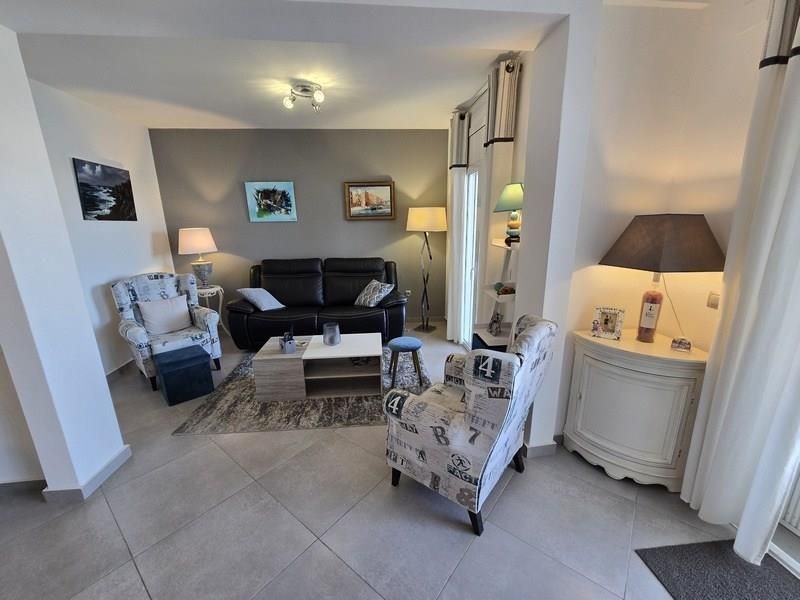 Ampli saló molt lluminós, amb TV, sofà de 2/3 places amb ajustaments elèctrics i 2 butaques.