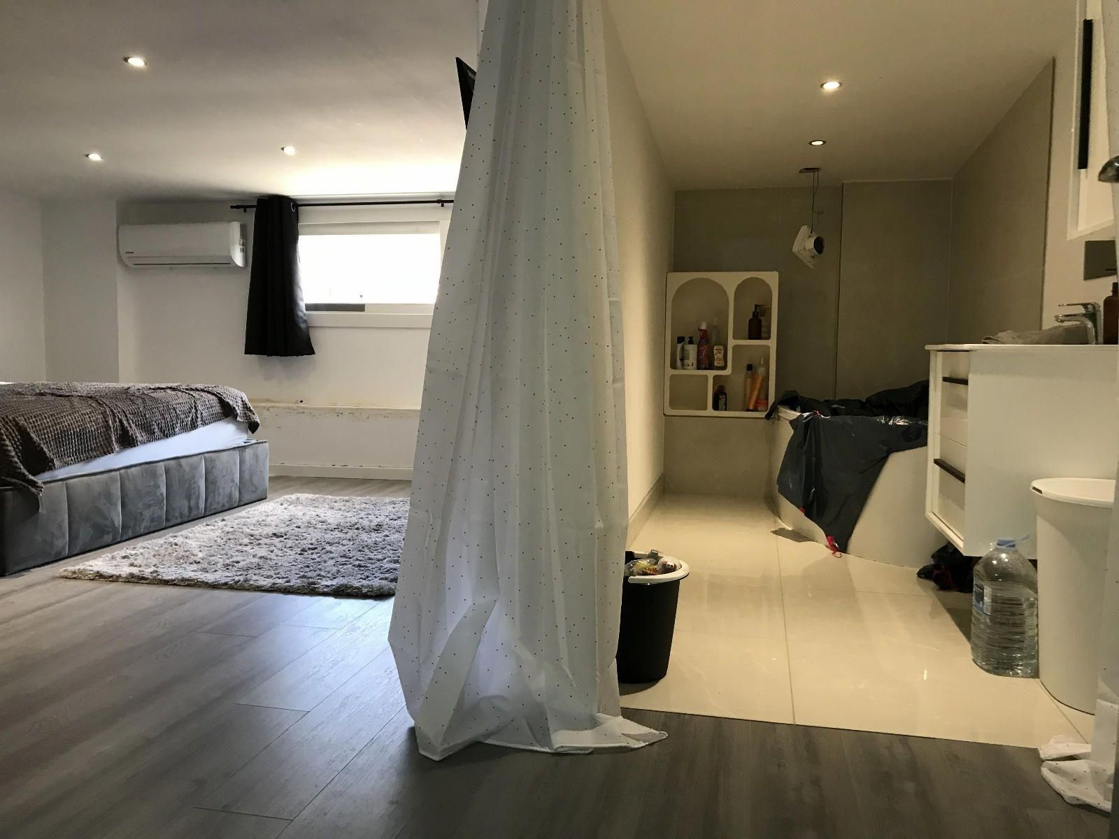 A més, compta amb un apartament a la planta superior, que consta de sala d'estar amb una cuina oberta, un lavabo i un dormitori amb un bany en suite. Ha estat reformat, però amb algunes parts sense acabar. No obstant això, l'apartament no es pot utilitzar com a primera residència, però per descansar entre la feina sense haver de desplaçar-se o per a reunions.