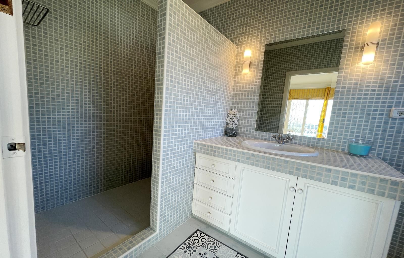La villa cuenta con tres dormitorios más un estudio independiente, uno de ellos en suite con baño privado y ducha, ambos con armarios empotrados. Además, hay un segundo baño completo, dos de los dormitorios son muy amplios y una tercera estancia que actualmente se utiliza como despacho, pero puede convertirse fácilmente en dormitorio individual gracias a sus armarios empotrados. Cada rincón ha sido diseñado con mimo, pensando en la funcionalidad y en la vida cotidiana.