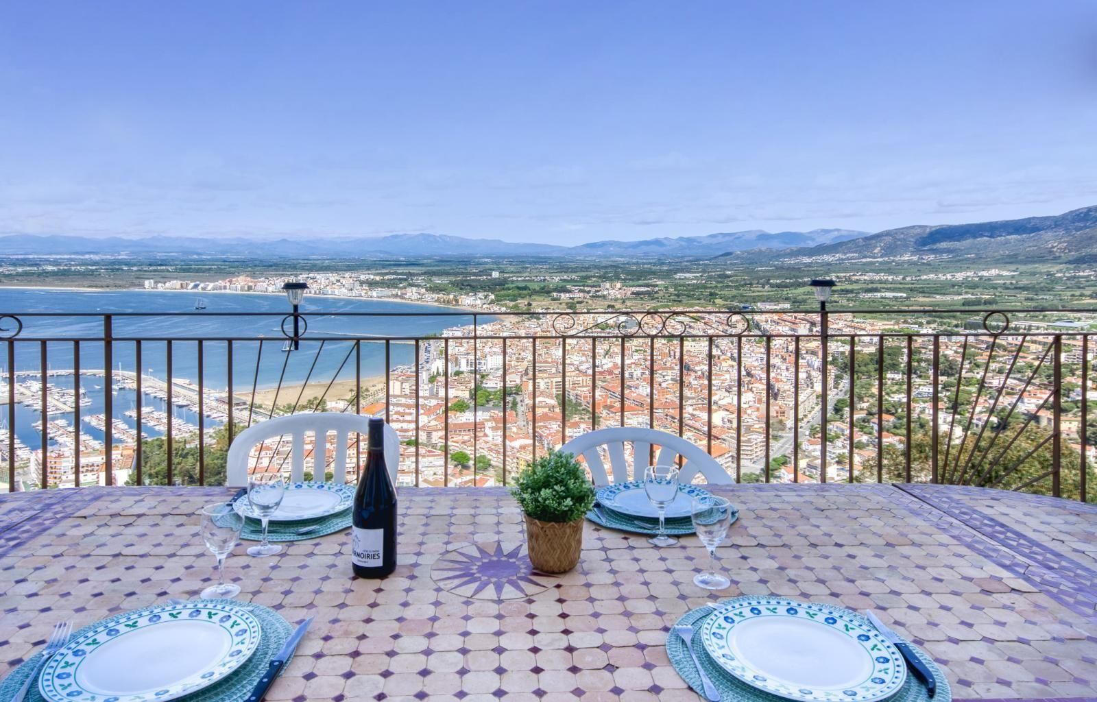 Descobreix aquesta magnífica propietat amb caràcter situada al prestigiós turó del Puig Rom, a Roses. Una vil·la d’estil mediterrani que combina calidesa, elegància i funcionalitat en un entorn privilegiat, amb vistes panoràmiques espectaculars al mar, la badia de Roses, les muntanyes de l’Alt Empordà i, en dies clars, fins als majestuosos Pirineus. Tot amb una orientació oest, ideal per gaudir de postes de sol inoblidables des de gairebé tots els racons de la casa.