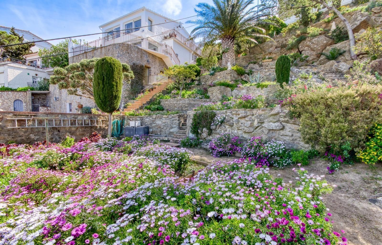 L’exterior és, sens dubte, una de les joies d’aquesta propietat: més de 600 m² de jardí mediterrani, piscina privada assolellada tot el dia i nombrosos racons encantadors per relaxar-se, llegir o prendre el sol amb total intimitat.