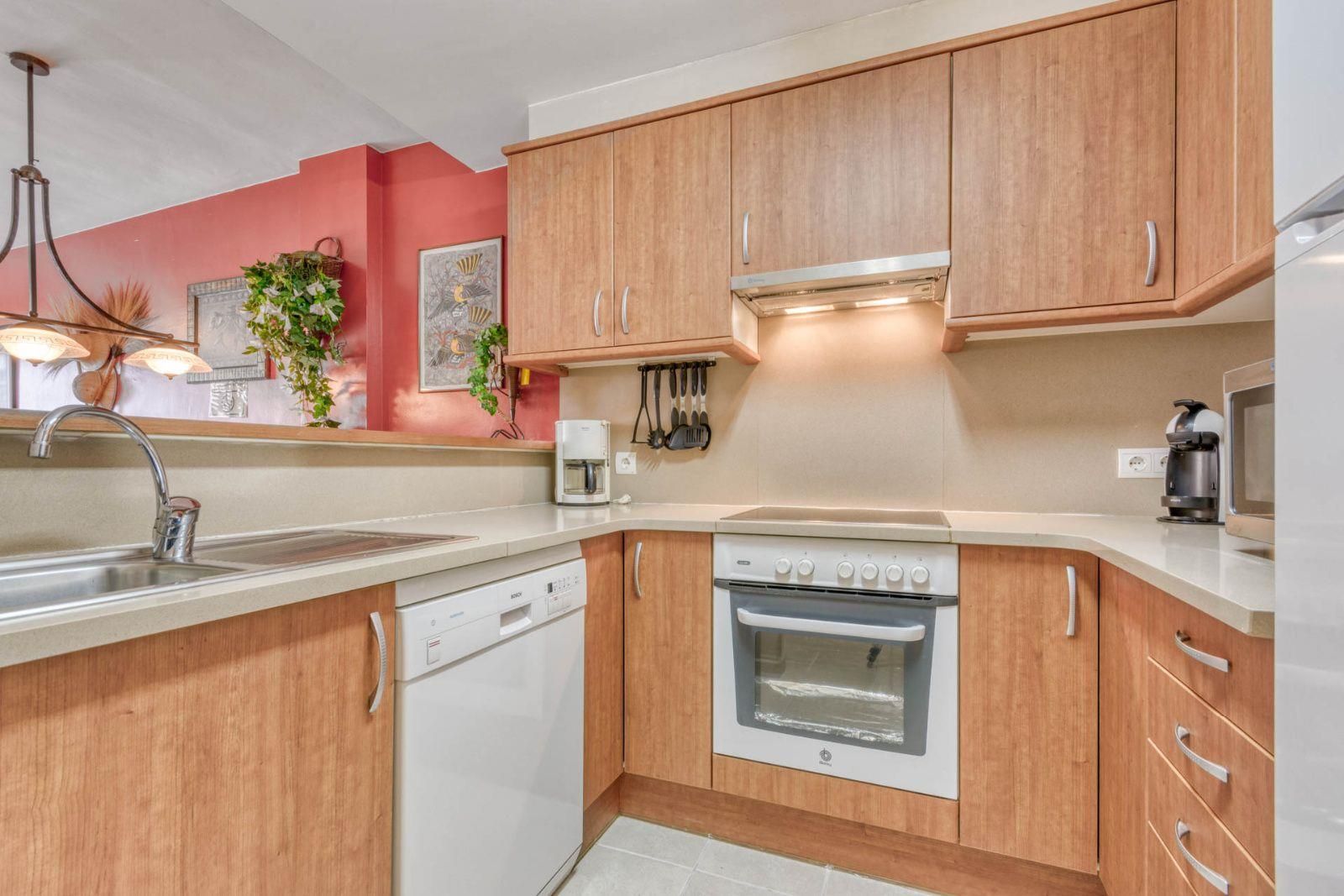 Té una cuina americana que dóna a la sala menjador amb sortida a una àmplia terrassa (17m2) amb una vista parcial al mar.