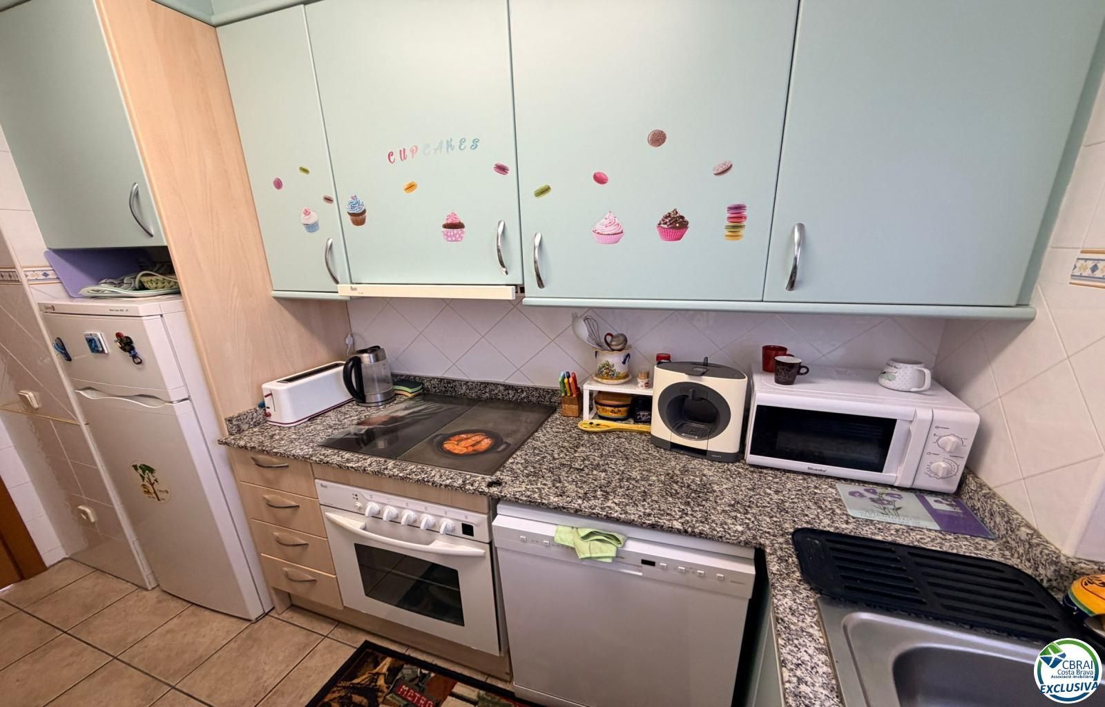 Pis en venda a Roses, amb 62 m2, 3 habitacions i 1 banys, Piscina, Garatge, Ascensor, Moblat i Aire condicionat.