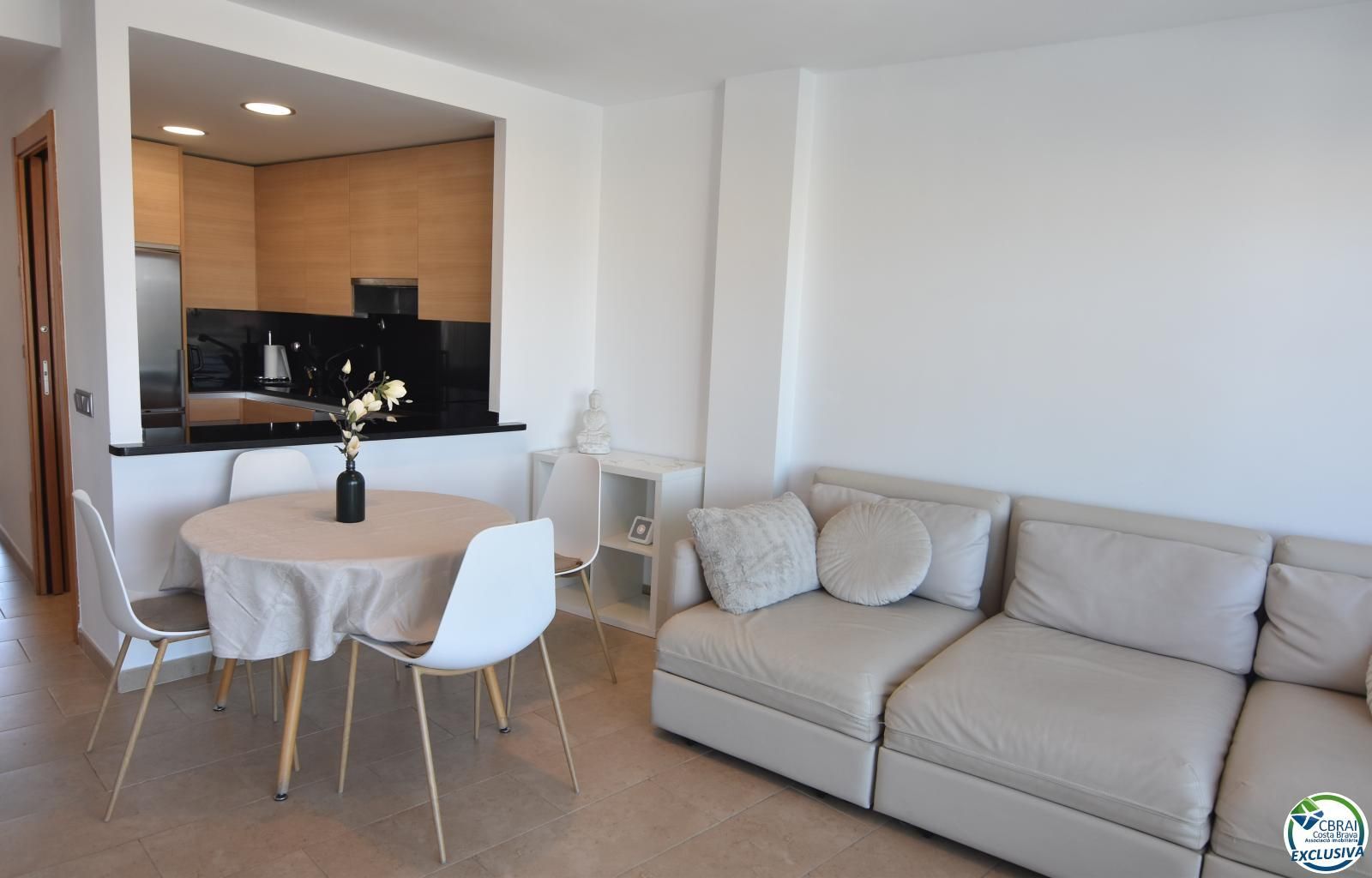 AMB LLICENCIA TURÍSTICA: En venda acollidor apartament totalment reformat a Roses, situat en un modern complex residencial. Consta d’un saló-menjador amb cuina americana, dues habitacions i un bany amb dutxa. També disposa d’una terrassa privada de 7 m² amb agradables vistes al canal de Santa Margarida.